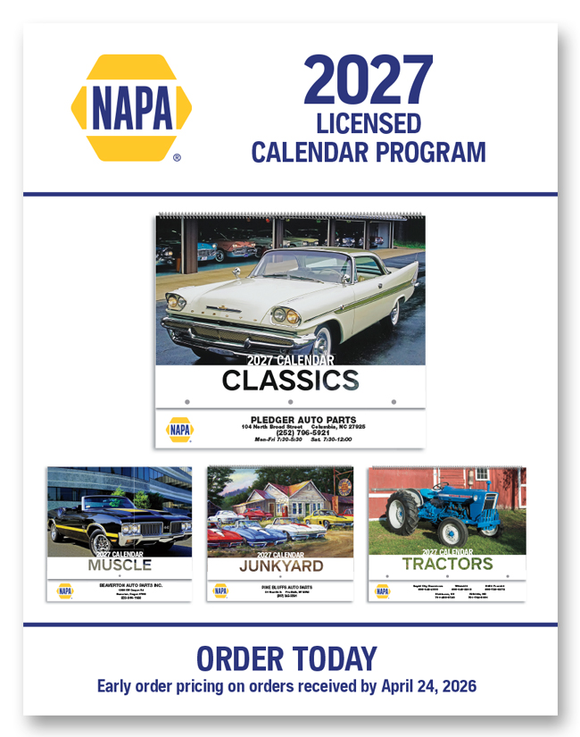The NAPA Calendar Program is designed around your need to reach a diverse audience. All of our calendars have a high-perceived gift value by your customers and prospects. And, because they are imprinted, your name and brand stay in front of your customers 365 days a year. No other advertising vehicle even comes close to a calendar’s phenomenal cost-efficiency and high-profile visibility.
